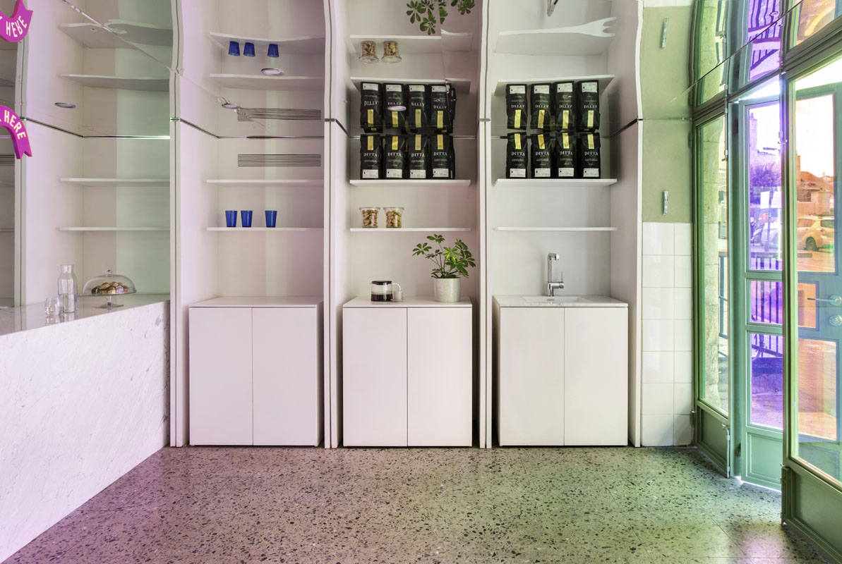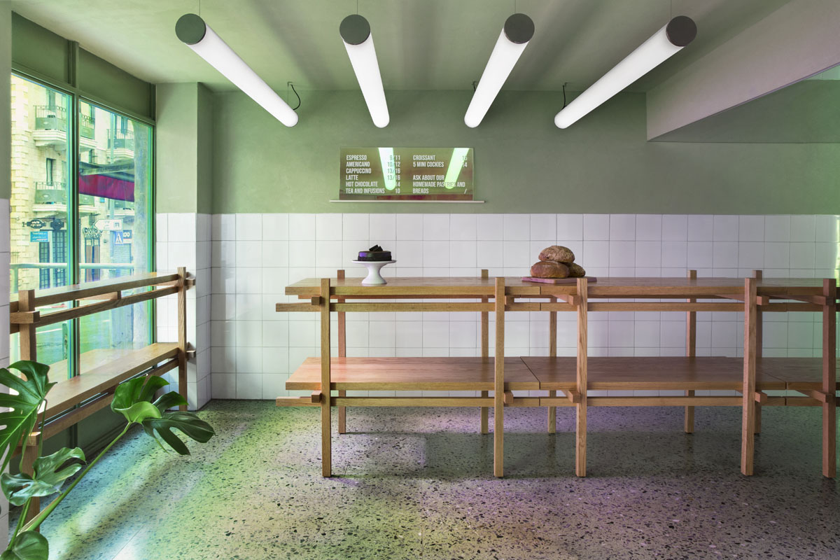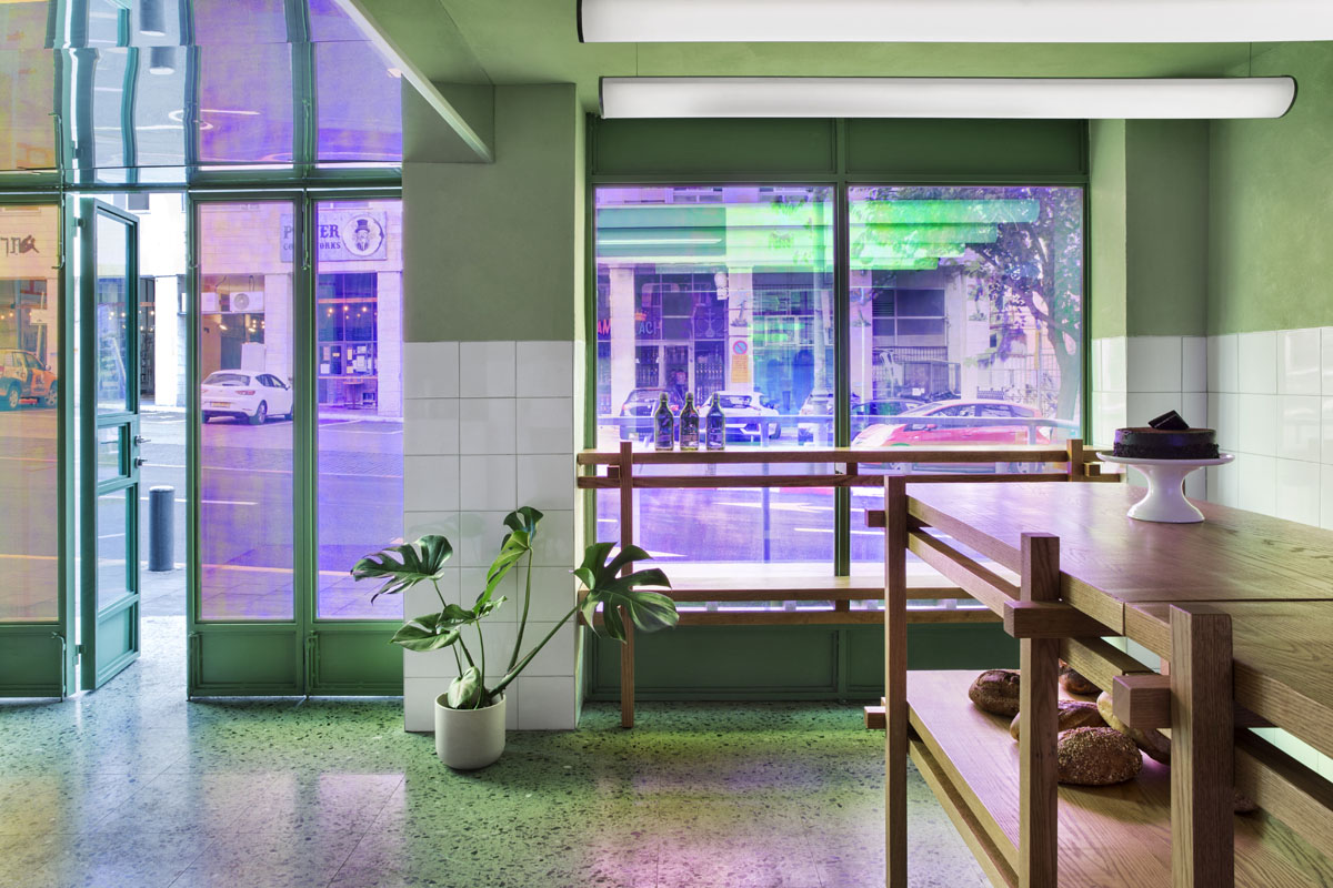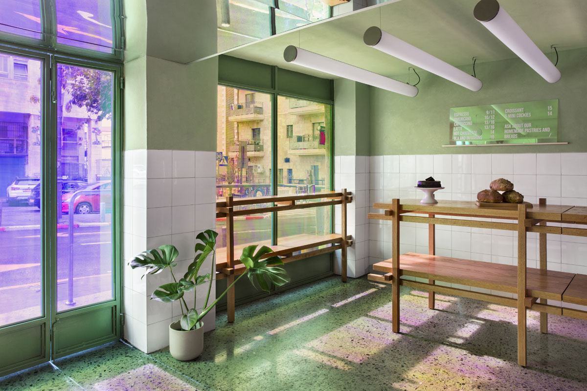 מאפייה קומפקטית, מלאת חן ואלגנטיות מלוטשת במסגרת תקציב מצומצם. יחסי אור וצבע נועזים מובילים את השפה החזותית. החלל מוקדש לסניף הירושלמי השני של דובשנית – מאפייה משפחתית ותיקה, הנפתחת בלב רובע האוכל והתרבות, שוק מחנה יהודה התוסס.