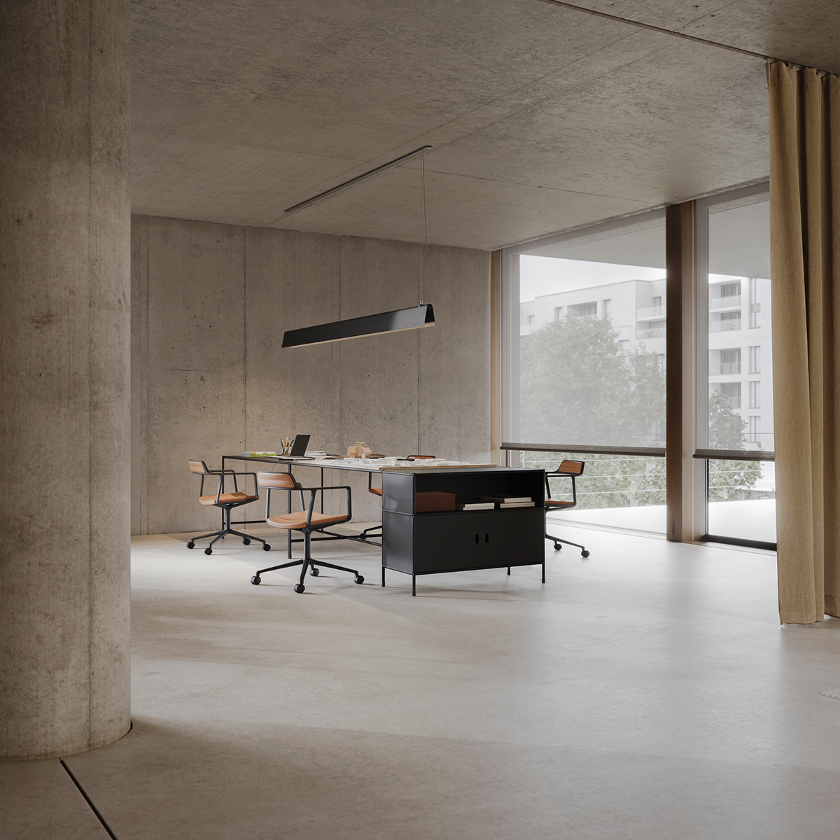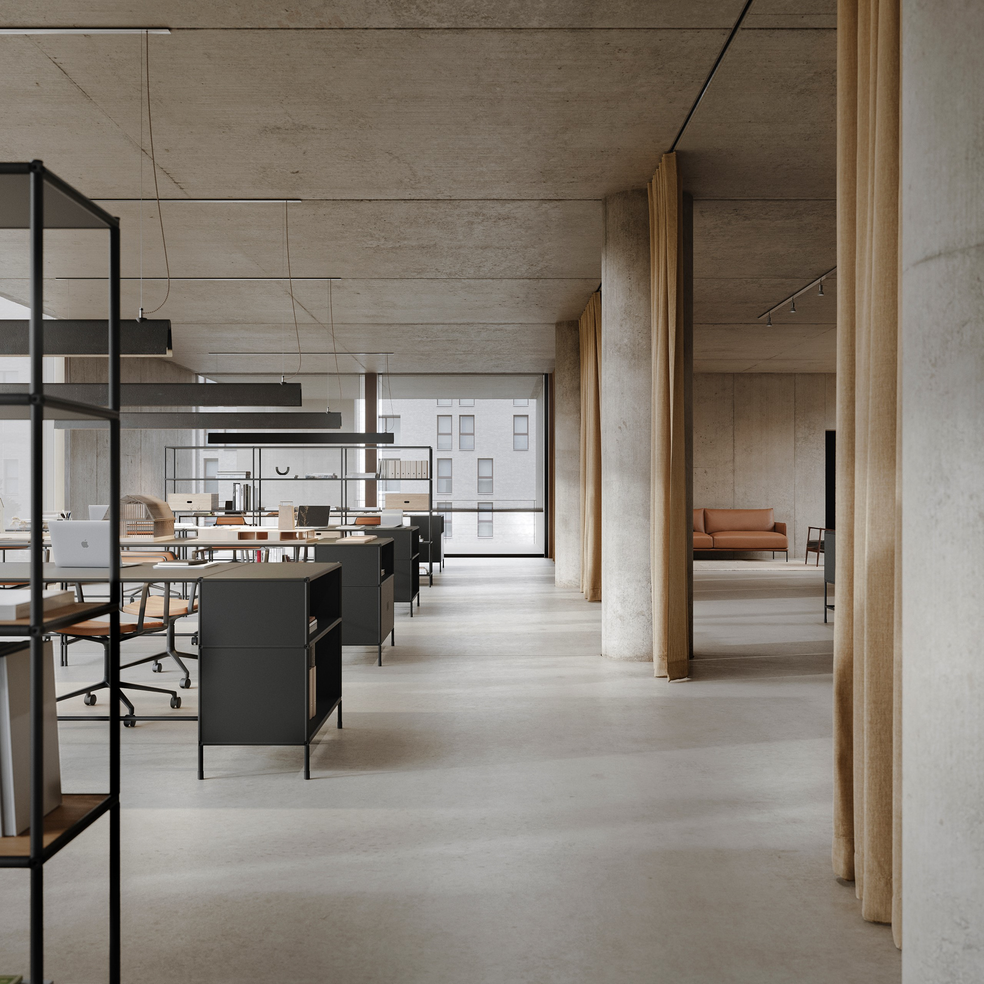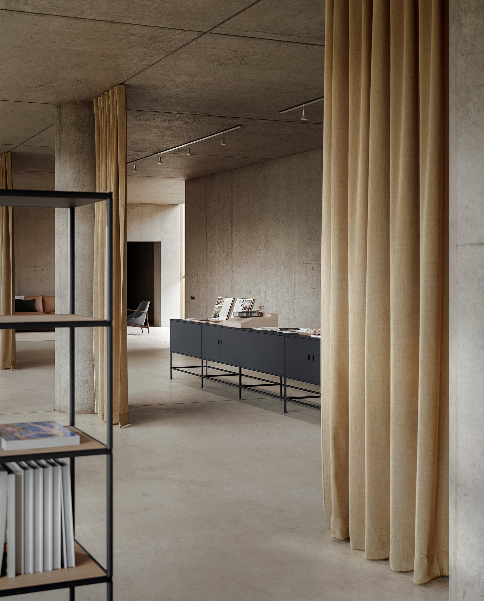 חלל עבודה לחברת יזמות ובנייה מתוכנן כסטודיו פתוח, מואר ומזמין. אלמנטים מתועשים כחלק מה-DNA של החברה ורוח האדריכלות המודרנית. חמימות מאוזנת בין חומרי גלם לריהוט וטקסטיל בצבעוניות מאזנת. צירי תנועה רחבים, עמדות עבודה מודולריות, אזורי ישיבה לא פורמליים, מחיצות בד גמישות, ותאורה ליניארית טכנית המגדירה מוקדי פעילות מדויקים.