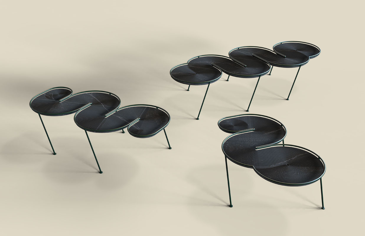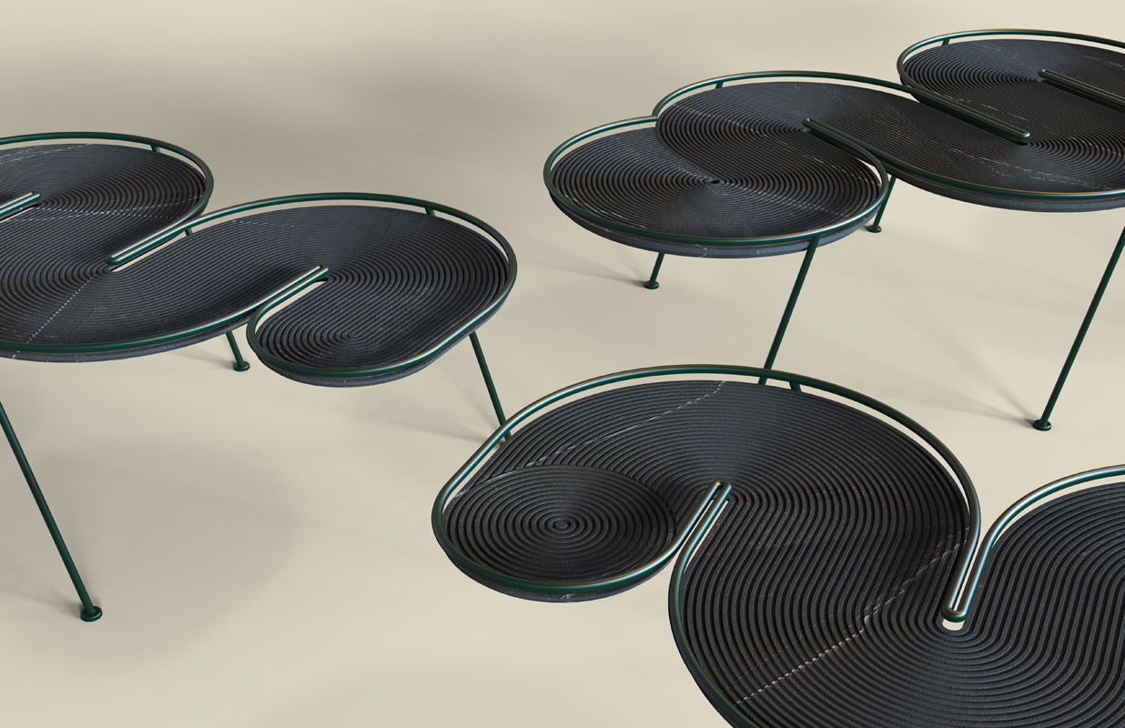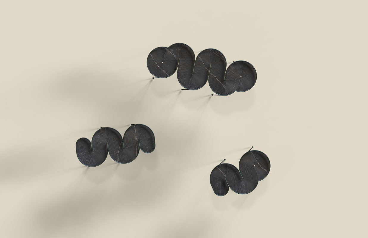 לוח דקטון 20 מ"מ / בסיס ברזל מגולוון בגמר ציפוי צבע אבקה. מוצר טקטילי וייחודי המשלב טכנולוגיה וחדשנות בחומר, יחד עם זאת אובייקט פשוט ואסתטי עבור: Cosentino Israel